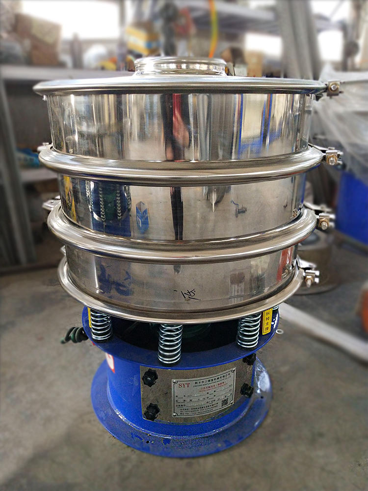 新鄉市三圓堂機械有限公司技術人員吸納國內振動篩的優點,設計制造。該機造型美觀結構合理,性能優良。SYT系列三次元振動篩是一款高精 度細粉篩分機械,其噪音低、效率高,快速換網僅需3-5分鐘, 全封閉結構,適用于粒、粉、粘液等物料的篩分過濾。